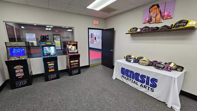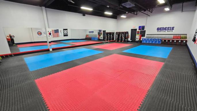 Genesis Martial Arts is a premier martial arts facility serving Waukesha and surrounding areas that is designed to meet the needs and expectations of our members. Our facility has a clean look with a modern feel that is sure to please! Genesis features a 2,000 square foot training area and a spacious 500 square foot lobby area. We have the latest training equipment from Century and Mooto. We also feature the BRAND NEW KPNP electronic sparring system currently used in the Olympics, 20/20 Armor electronic sparring system, and Daedo electronic sparring system. All three come with E-Chest Guards, E-Helmets and an Ultra HD scoreboard. Free wifi is available for all members.